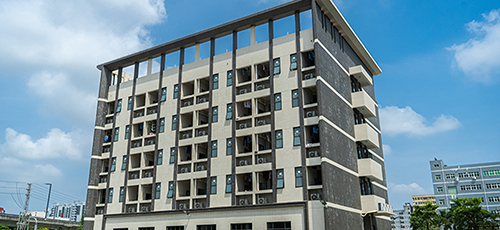 生活大樓一樓是工廠食堂(同時容納近150人就餐),二樓以上工廠宿舍